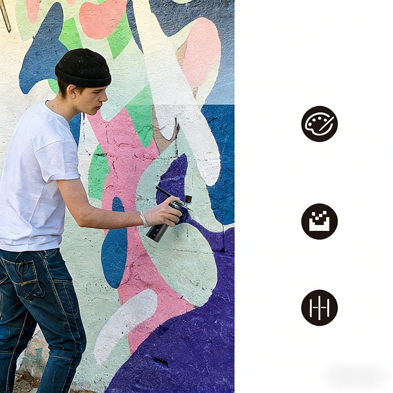 EINSTELLBARE LUFTSTROMKONTROLLE - Mit einem einfachen Knopfdruck können Sie mühelos zwischen verschiedenen Druckeinstellungen wechseln und haben so eine präzise Kontrolle über den Farbausstoß – von großflächigen Arbeiten bis hin zu feinen Linien und Schattierungen.