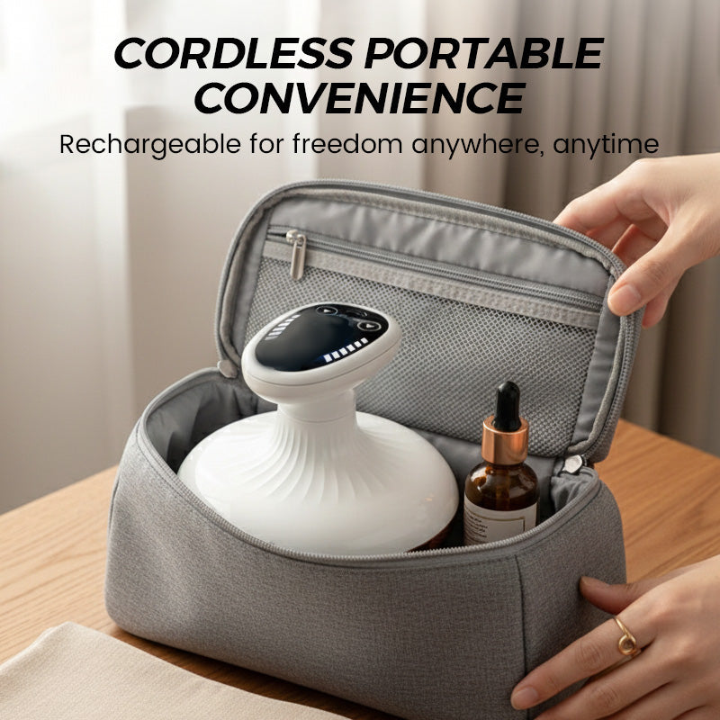 KABELLOS & TRAGBAR – Der integrierte Akku und die einfache Ein-Knopf-Bedienung bieten volle Bewegungsfreiheit. Dank des leichten, ergonomischen Designs ist das Gerät ideal für entspannte Momente zu Hause oder unterwegs.